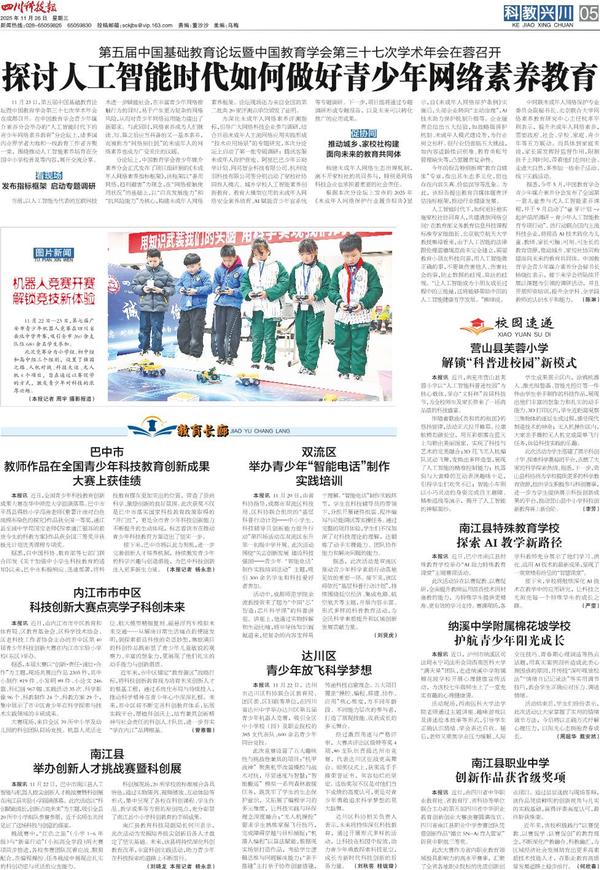本报讯 近日,由四川省中华职业教育社、省教育厅、省科协等单位联合主办的第五届四川省中华职业教育创新创业大赛决赛圆满收官。四川省南江县职业中学参赛团队凭借创新作品“德立5N-Ai育人管家”斩获中职组三等奖。