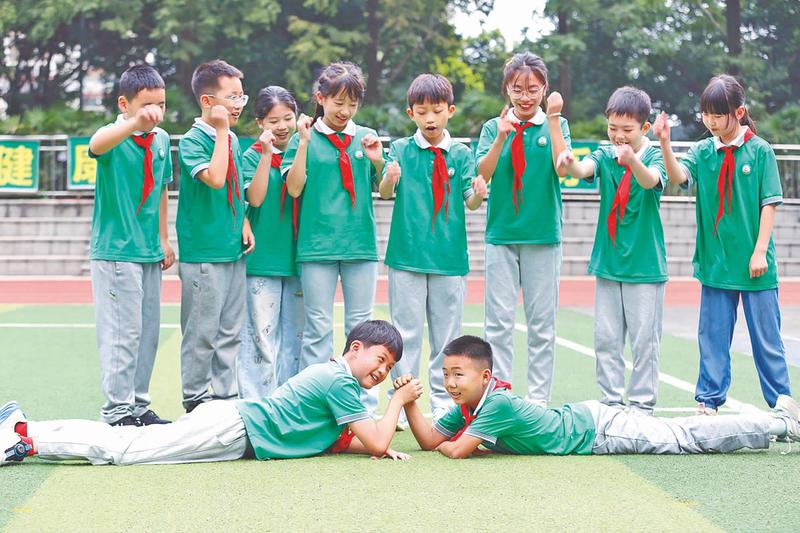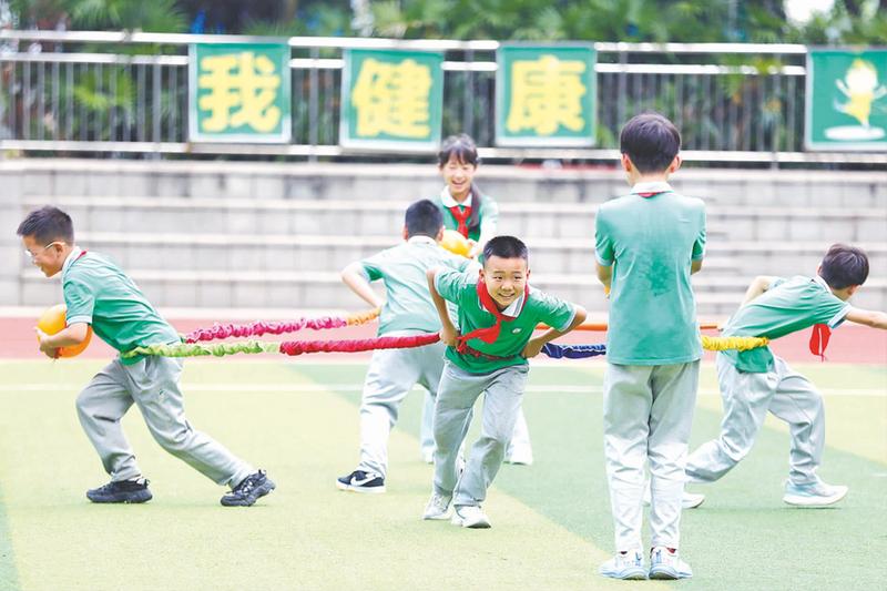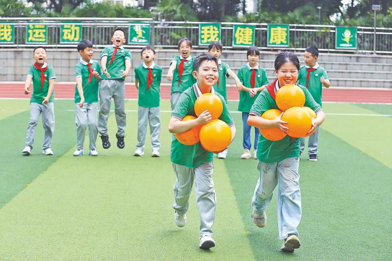 、东南西北跑、协作运球等游戏释放压力,享受运动带来的乐趣。(李华时
