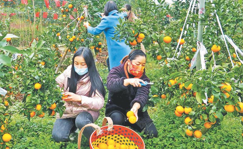 近日,巴中市南江县长赤镇青冈村柑橘种植基地,游客前来体验采摘乐趣。近年来,南江县积极推动观光采摘农业和乡村旅游融合发展,有效促进乡村振兴和农业增效、农民增收。(本报通讯员 肖定怀 摄影报道)