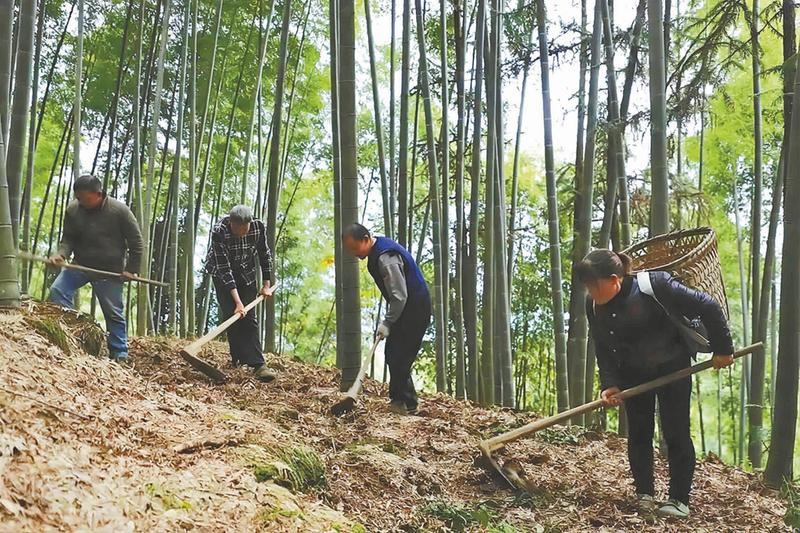 近日,宜宾市兴文县僰王山镇博望村的头茬冬笋迎来采收季,悄然上市的“冬日限定美味”为村民带来了丰收喜悦。图为村民在采挖冬笋。(黄燕飞 摄影报道)