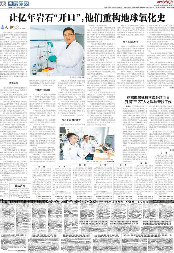 近日,成都理工大学教授李超团队关于地球大气氧含量演化的研究成果发布于Nature(《自然》)。文章从投稿到被接收,仅用了半年时间。审稿人评价该研究“提供了迄今为止关于大气氧含量演化的最佳指标记录。”“为当前大气氧化历史的认识树立了‘新标杆’。”