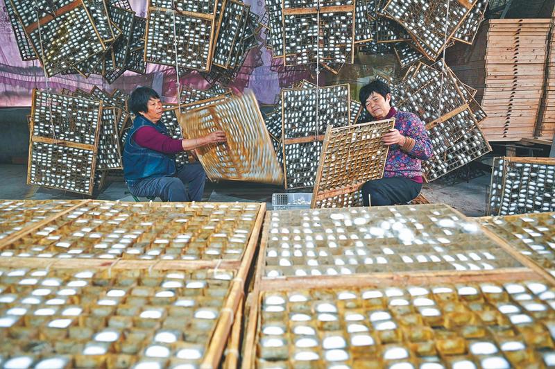 10月26日,在内江市东兴区双桥镇双流村,蚕农正忙着采摘晚秋蚕茧。