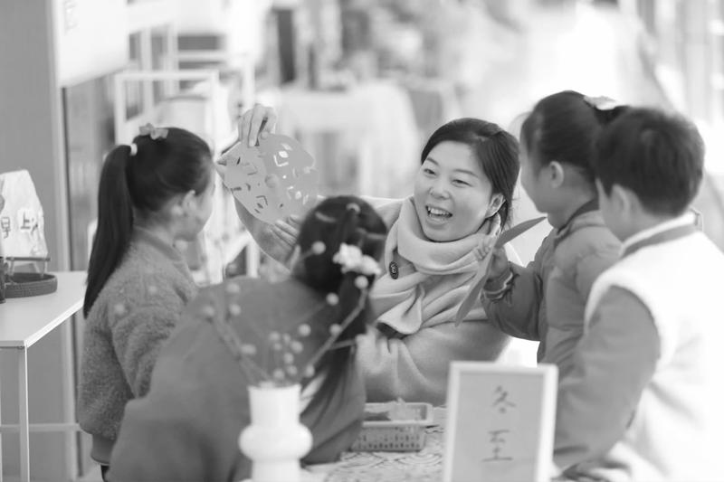 冬至将至,乐山市多所幼儿园纷纷开展了以“知民俗 迎冬至”为主题的精彩活动。在老师的悉心引导下,小朋友们兴致勃勃地学习剪窗花、包饺子、制作糖葫芦等传统民俗技艺,在亲身体验中感知传统民俗的独特魅力,满心欢喜地迎接冬至的到来。图为在乐山市实验幼儿园,老师指导小朋友剪窗花。(李华时 摄影报道)