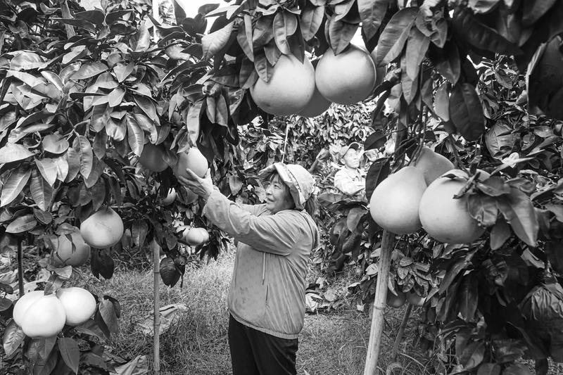 代市镇大田村,村民采摘蜜柚。姜曦悦 摄
