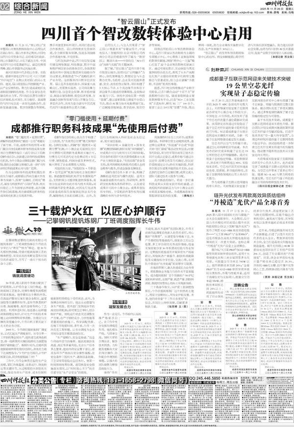 “智云眉山”的发布和智改数转体验中心的启用,将全面赋能眉山数字经济与实体经济深度融合,助力地方经济社会发展,也将为四川加快AI技术普惠应用、促进产业数字化转型注入新动能。(本报记者 苏文保)