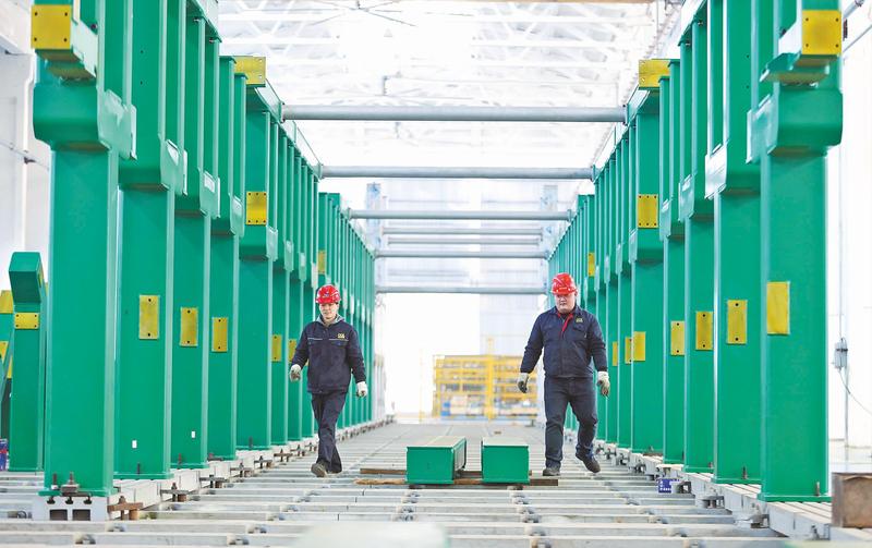 1月12日,位于乐山市市中区苏稽镇的成发造纸机械有限公司生产车间内,工人正在检查机架装配情况。