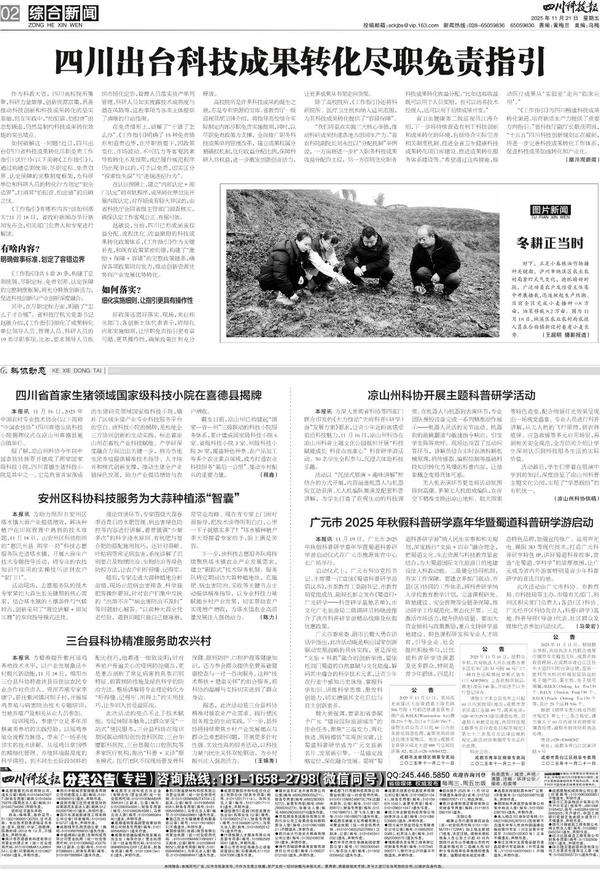 本报讯 11月16日,2025年中国农村专业技术协会(以下简称“中国农技协”)四川喜德生猪科技小院揭牌仪式在凉山州喜德县冕山镇举行。据了解,凉山州科协今年向中国...