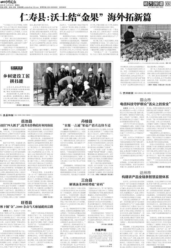 本报讯 近日,在眉山市丹棱县齐乐镇梅湾村党群服务中心,一场围绕“农服一点通”使用的培训会吸引了众多果农参与。现场,大家认真学习如何录入品种、规格、重量,上传实拍...