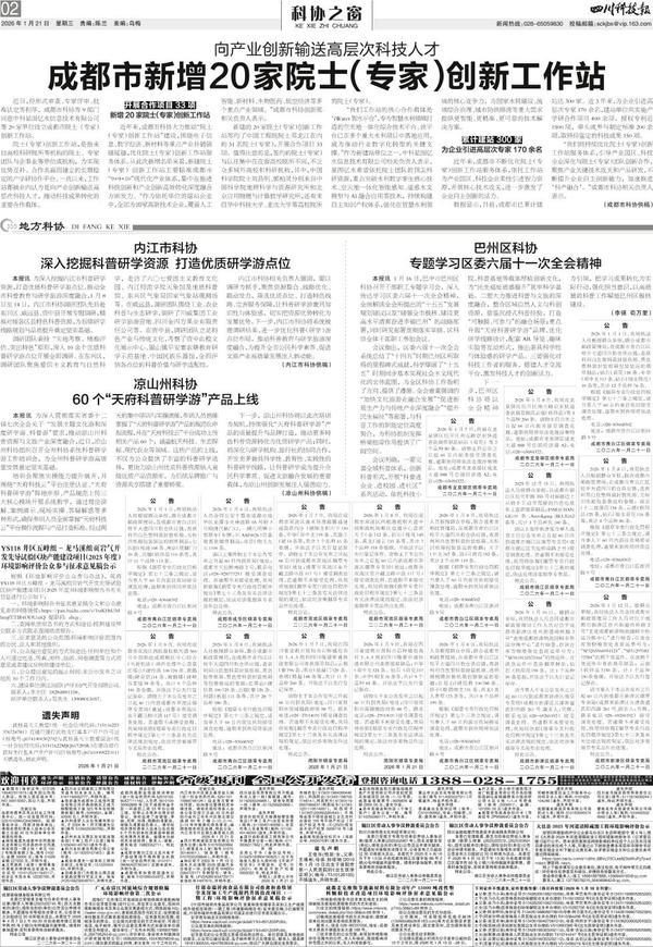 近日,经形式审查、专家评审、批准认定等程序,成都市科协等9部门同意中科星图亿水信息技术有限公司等20家单位设立成都市院士(专家)创新工作站。院士(专家)创新工作...