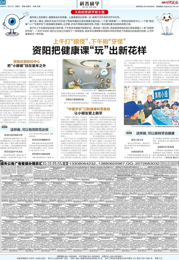童年是人生的基石,健康是成长的根基。儿童健康成长的每一步,都离不开科学的守护与引导。基于这一理念,资阳市为孩子们打造了两座专属的沉浸式健康主题乐园:一个是“明眸...