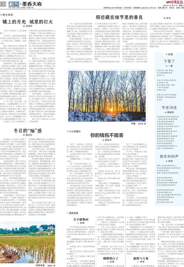 ● 杨安中我开了一间杂货店,虽然常有熟人和朋友光顾,但生意仍然惨淡。我沮丧地开车回家,收拾后座时,发现一只粗糙的黑色钱包。是谁落下的呢?想打开看看,最终都没打开...