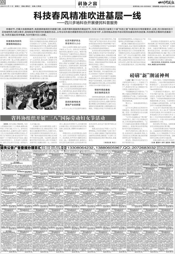 仲春时节,巴蜀大地春意盎然,既是春耕备耕的关键窗口期,也是开展科普服务的黄金时节。为深入落实四川省第三十届“科技之春”科普活动月等部署要求,近期,四川各地科协立...
