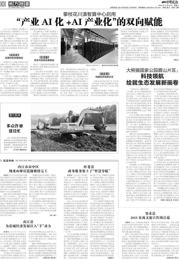 攀枝花川滇智算中心。 攀枝花市科学技术局供图12月15日,攀枝花川滇智算中心正式点亮启用,川滇智算中心产业生态联盟也同步成立,标志着该市在人工智能发展上迈出关键...