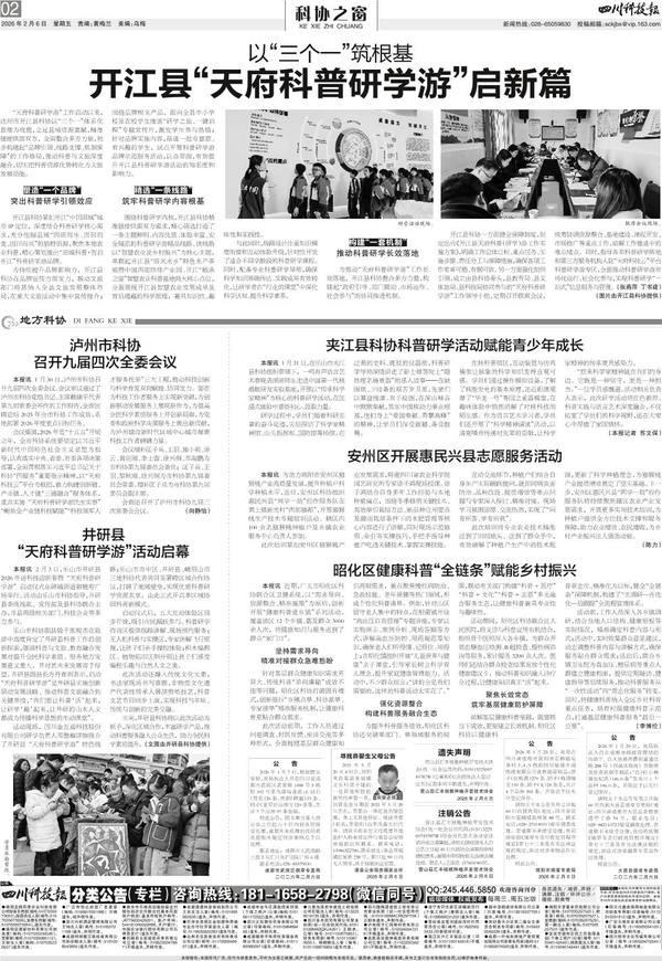 研学活动现场。联席会议现场。“天府科普研学游”工作启动以来,达州市开江县科协以“三个一”体系化思维为统揽,立足县域资源禀赋,精准链接供需双方,全面整合多方力量,...