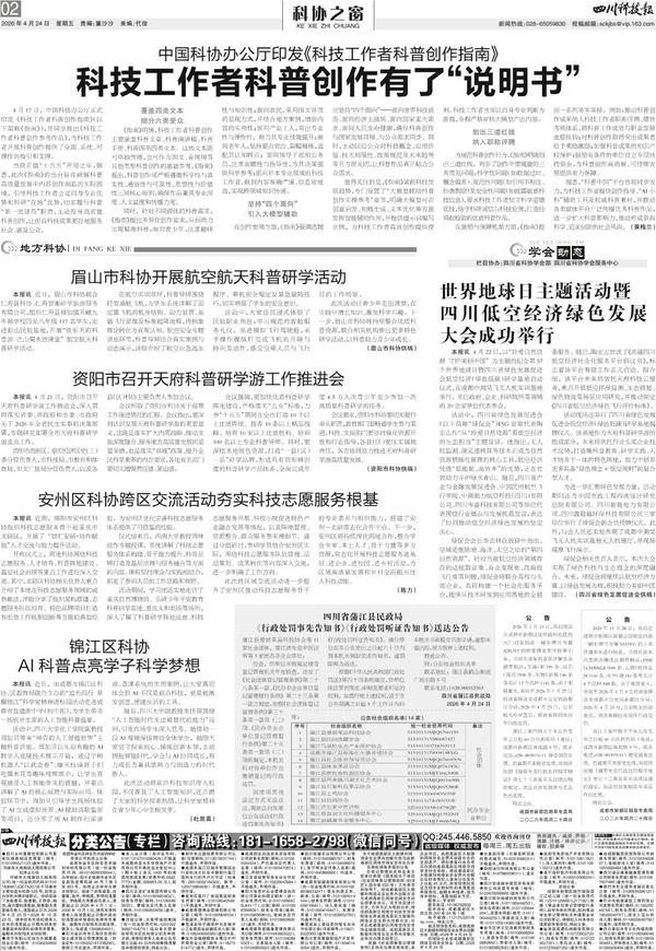 4月17日,中国科协办公厅正式印发《科技工作者科普创作指南》(以下简称《指南》),并同步推出《科技工作者科普创作参考作品》,为科技工作者开展科普创作提供了全面、...