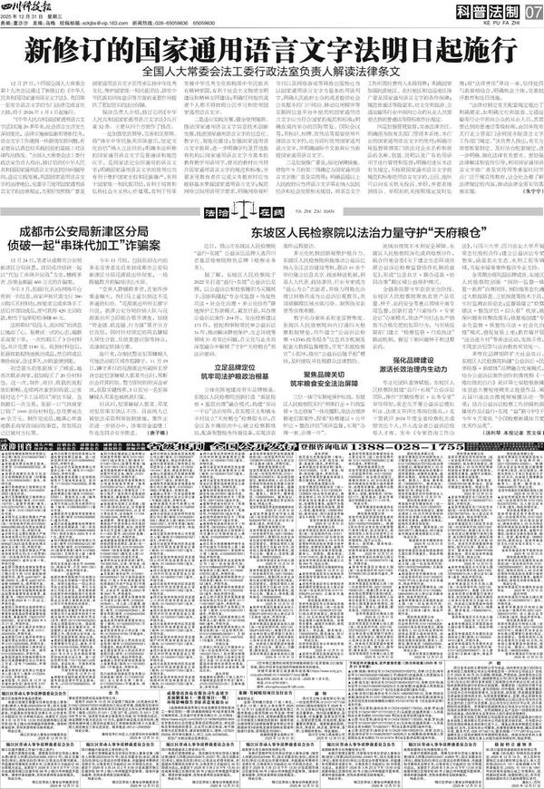 12月27日,十四届全国人大常委会第十九次会议通过了新修订的《中华人民共和国国家通用语言文字法》。我国第一部有关语言文字的专门法律完成首次大修,将于2026年1...