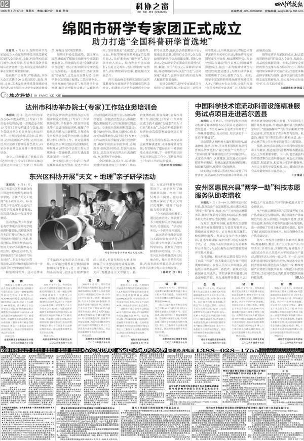 本报讯 4月15日,中国科学技术馆流动科普设施精准服务试点项目走进阿坝州若尔盖县,为当地6000余名青少年带来了一场集科普展览、互动体验、知识讲座于一体的“科普...