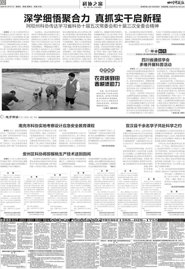 本报讯 3月23日,阿坝州科协召开专题会议,传达学习省科协十届五次常委会和十届三次全委会精神,深入解读会议部署要求,紧密结合阿坝州科协工作实际研究贯彻落实举措。...