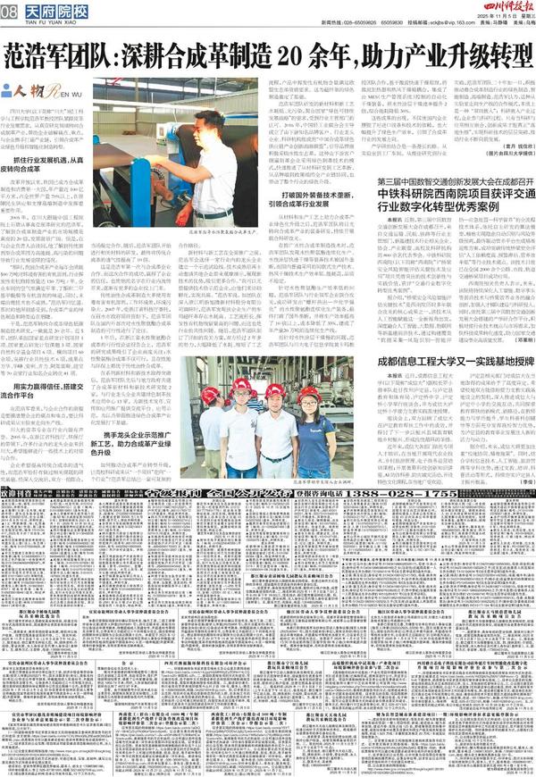 范浩军指导水性聚氨酯合成革生产。范浩军带领学生深入企业调研。四川大学(以下简称“川大”)轻工科学与工程学院范浩军教授团队紧跟皮革行业发展需求,从真皮研究领域转向...
