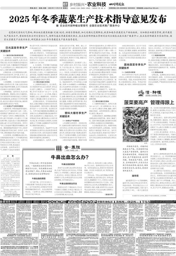 ■ 农业农村部种植业管理司 全国农业技术推广服务中心受夏秋灾害性天气影响,部分地区蔬菜秋播(定植)延迟、幼苗长势偏弱,加之近期大范围降温,秋茬和越冬茬蔬菜生产面...