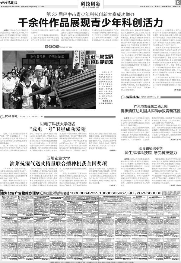 本报讯 近日,由巴中市科协、市委依法治市办、市教育局、市科技局、市财政局、市生态环境局、团市委、市妇联主办,市青少年科技活动中心、市科技馆、市青少年科技教育协会...