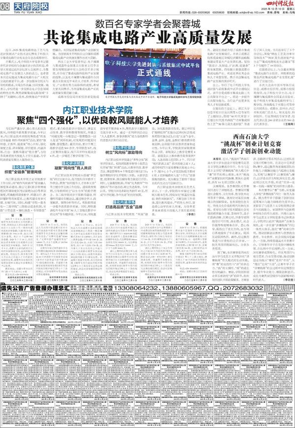 电子科技大学先进封装与系统集成中试平台通线。电子科技大学集成电路科学与工程学院供图近日,2025集成电路特色工艺与先进封装测试产业技术论坛暨电子科技大学集成电路...