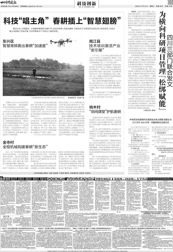 春回大地,万物复苏。时值春耕备耕的关键时节,自动化育秧、机械化播种、专家技术下乡等创新实践在四川多地开花,科技力量正深度融入传统农事,为全年粮食丰产丰收注入强劲...