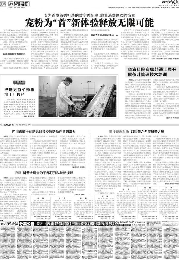 本报讯 今年9月,攀枝花市科协以“提升全民科学素质,夯实科技强国基础”为主题,组织开展了一系列丰富多彩、富有成效的科普活动,通过科普大篷车进校园、科学实验秀、科...
