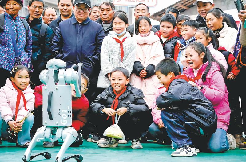 日前,在巴中市通江县胜利乡新时代文明实践所,村民、孩子们与机器狗展开了一场别开生面的“人机互动”。