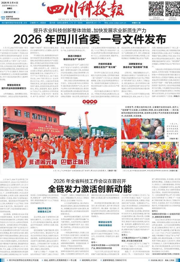 • 提升农业科技创新整体效能,加快发展农业新质生产力 2026年四川省委一号文件发布