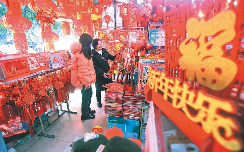 春节将至,乐山市市中区各大年货市场人头攒动,红彤彤的灯笼、寓意吉祥的中国结、造型各异的生肖马挂件等新春饰品琳琅满目。市民们穿梭于摊位间,精心挑选心仪的年货,不少家庭结伴而来,为即将到来的马年春节增添喜庆氛围。图为近日,市民在市中区一年货批发市场选购春节饰品。(李华时 摄影报道)