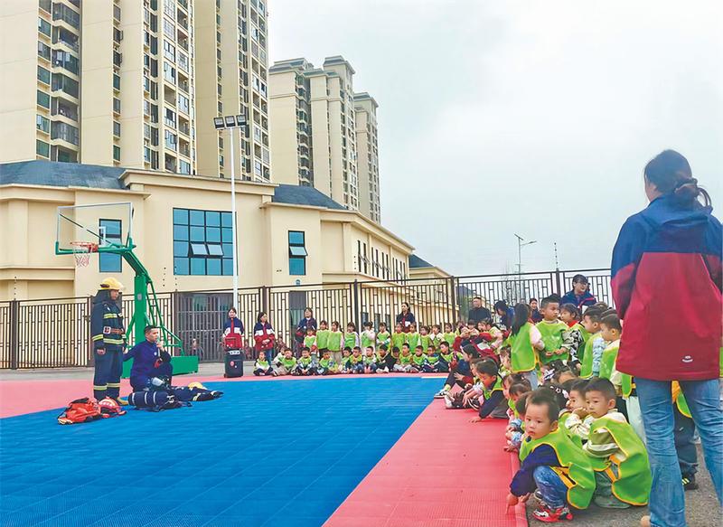 11月4日,遂宁市蓬溪县消防救援大队蓬宝路消防救援站组织开展了“消防站开放日”活动。活动中,安格保幼儿园的师生通过近距离观察和聆听讲解,对消防工作建立了初步认知,增强了消防安全意识。图为讲解员为师生介绍各类救援装备的性能与用途。(蓬溪县消防救援大队供图)