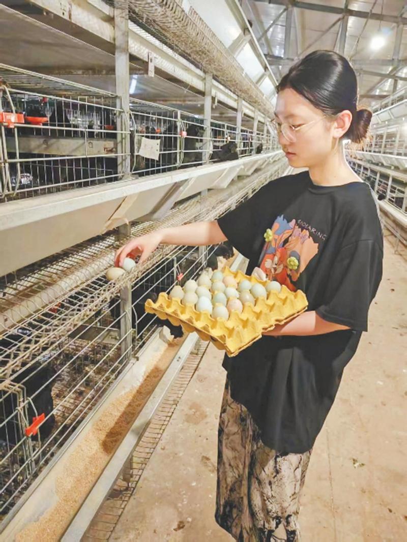 来到科技小院的鸡舍,李湘又一次被触动。这里投料、温控、光照、负压环境及鸡粪处理等全自动化设施一应俱全,科技感拉满,仅需工作人员简单操作即可。此后每天早上8点,她准时来鸡舍“打卡”,看精神、测温度、记通风;下午5点30分,她再次来鸡舍,捡鸡蛋、验品质、写日志。每隔一周,她还会给实验动物称一次体重,再按照实验方案配比饲料进行科学喂粮,观察乌骨鸡进食情况良好后,她才能安心地离开鸡舍。