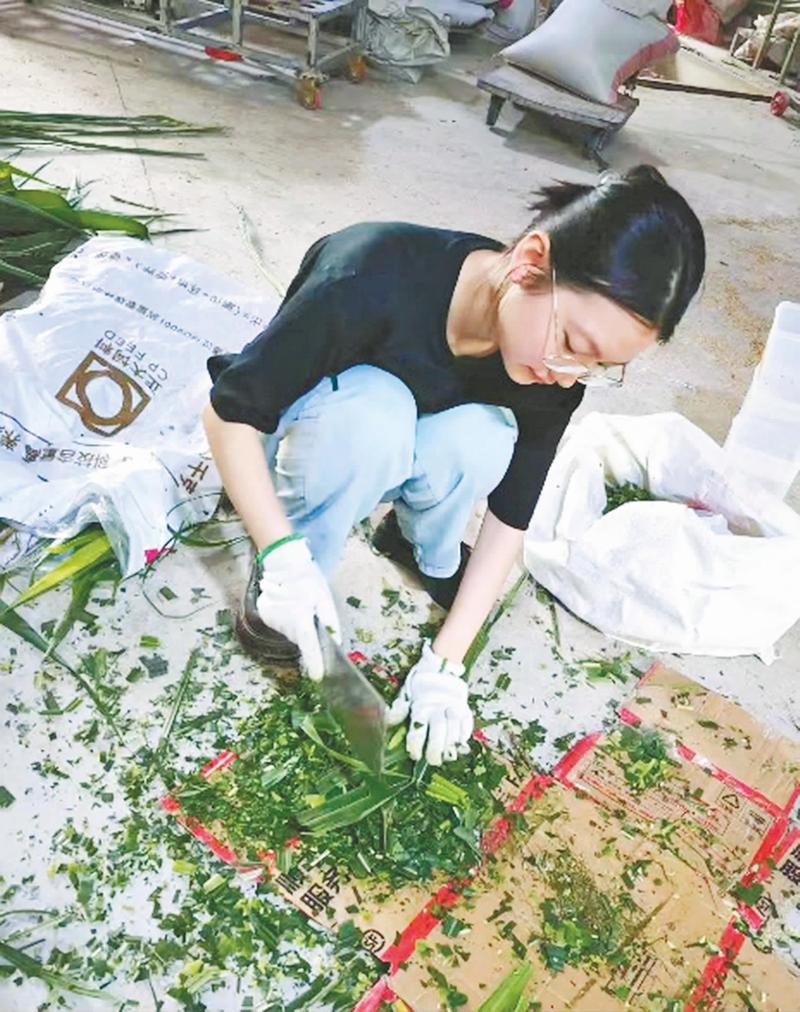 在科技小院的学习生活中,还有一件事令李湘印象极为深刻,那就是跟随科技小院首席指导专家舒刚副教授开展的“研究香桂叶对旧院黑鸡产蛋性能、蛋品质及血清抗氧化指标的影响”和“探究日粮中添加狼尾草和黑水虻虫粉对产蛋乌骨鸡生产性能、蛋品质和血液生化指标的影响”两项试验。在这两项试验里,香桂叶、狼尾草、黑水虻虫粉轮番上阵,成为乌骨鸡的“药膳”。