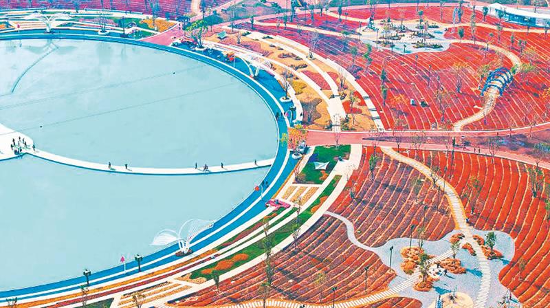 首先要为这座沉睡的尾矿库加固“骨骼”,对坝体进行防渗、加固等安全处理,确保这个昔日的“隐患”变成安全地带。然后,运送新土进行覆盖,最厚的地方土层深达2米,这相当于给整个尾矿库铺上了一层超级厚的“营养面膜”,为后续植物生长创造了基础条件。紧接着,在库区种植生态修复的“明星植物”籽粒苋以及其他根系发达、耐贫瘠的植物,它们像“大地缝针”一样牢牢抓住新覆的土层,防止水土流失,为生态系统的重建打下了基础。当土壤恢复基础地力后,观赏花木陆续登场,它们与“先锋植物”共同构建起稳定的生态系统。