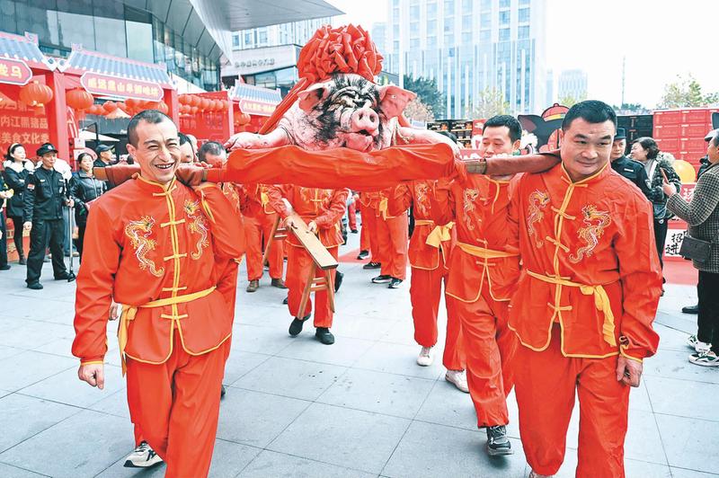 12月27日,内江市举办“年猪节”暨美食文化季活动,市民与游客在活动中看表演、玩游戏、品美食,热热闹闹迎接2026年的到来。(本报通讯员 兰自涛 摄影报道)